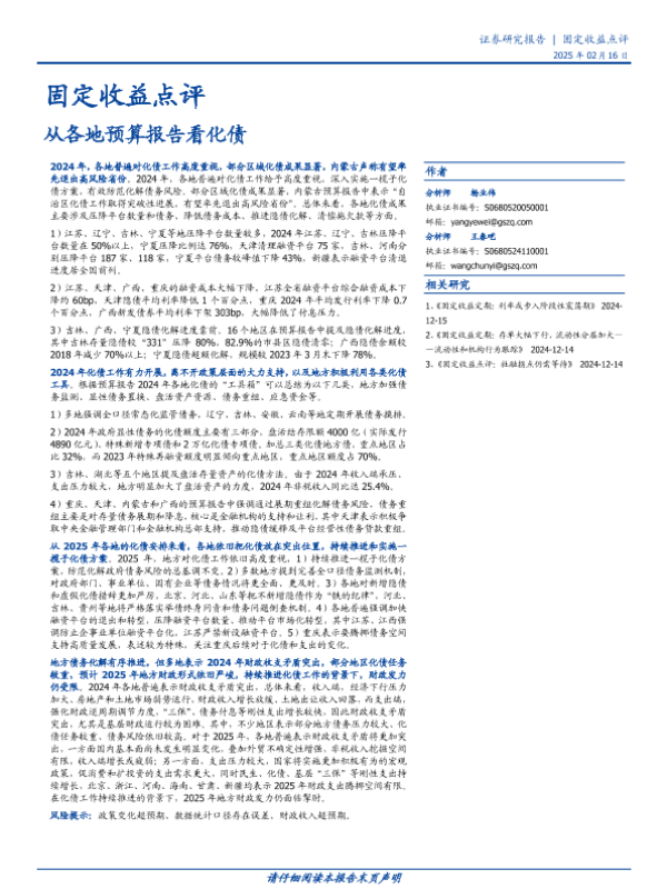 【国盛证券】【20250216】固定收益点评:从各地预算报告看化债-12页