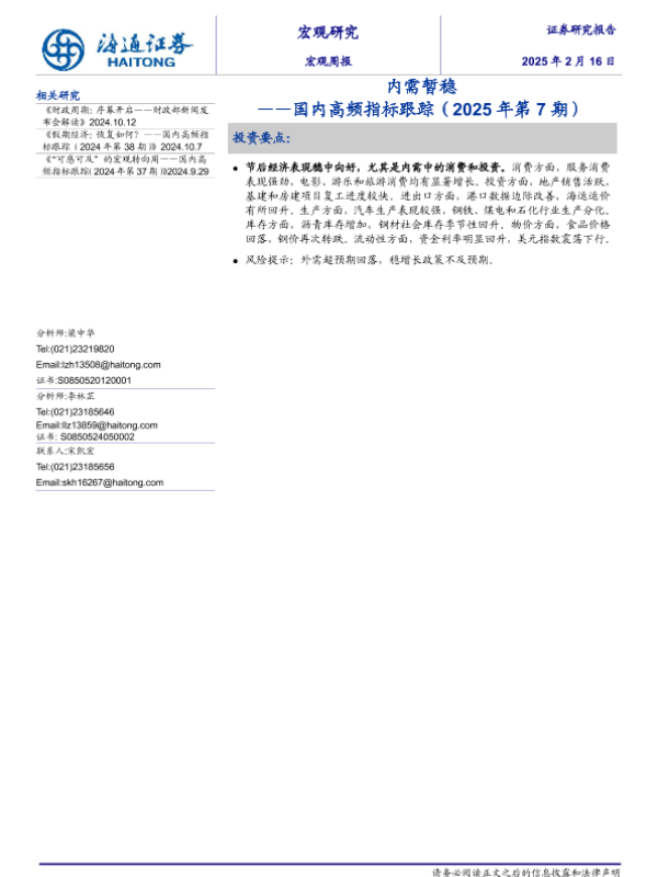 【海通证券】【20250216】国内高频指标跟踪(2025年第7期):内需暂稳-11页