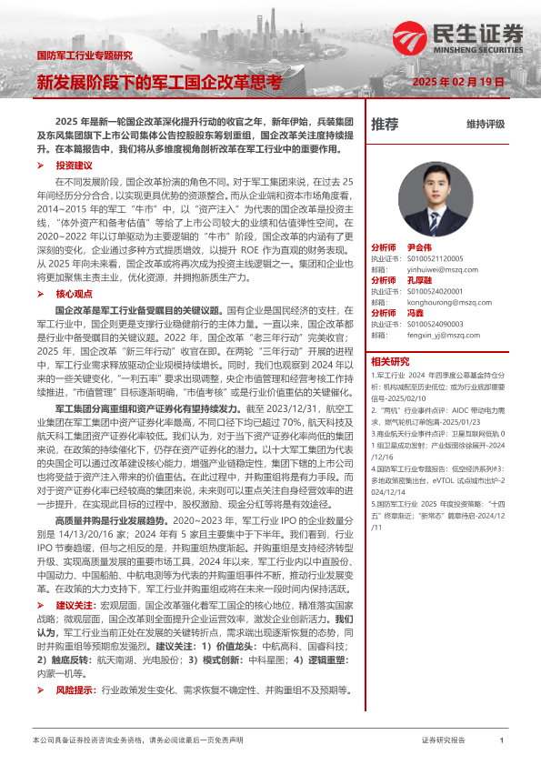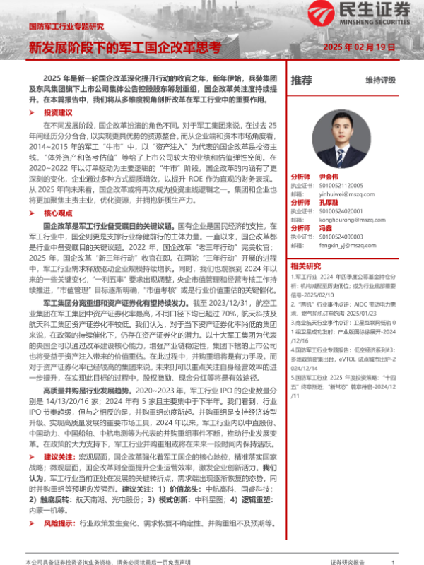 【民生证券】【20250219】国防军工行业专题研究:新发展阶段下的军工国企改革思考-24页