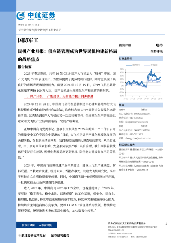 【中航证券】【20250216】国防军工行业民机产业月报:供应链管理成为世界民机构建新格局的战略焦点-18页