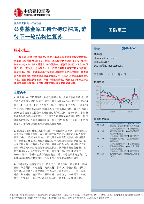 【中信建投证券】【20250215】国防军工行业:公募基金军工持仓持续探底,静待下一轮结构性复苏-26页