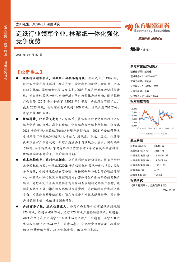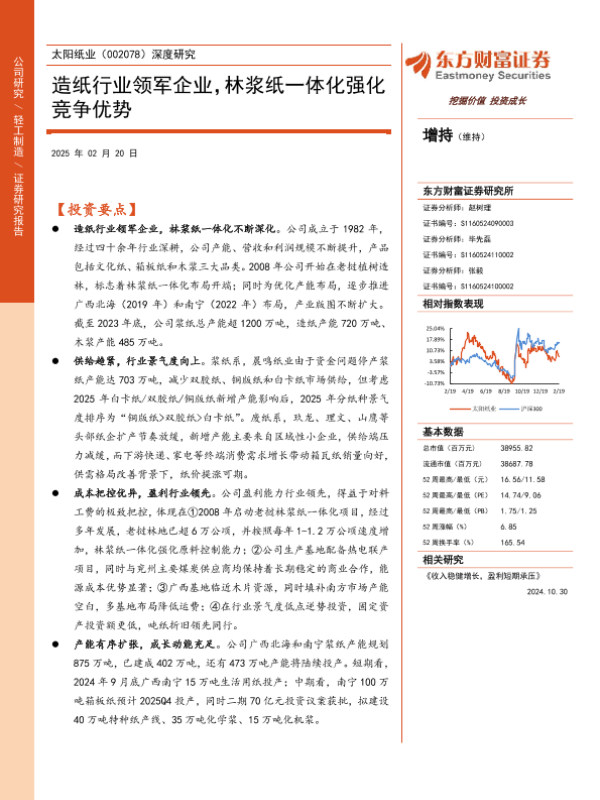 【东方财富证券】【20250220】太阳纸业(002078)深度研究:造纸行业领军企业,林浆纸一体化强化竞争优势-22页