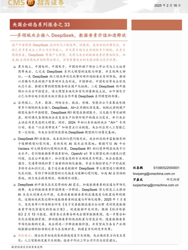 【海通证券】【20250216】央国企动态系列报告之33:多领域央企接入DeepSeek,数据要素价值加速释放-28页