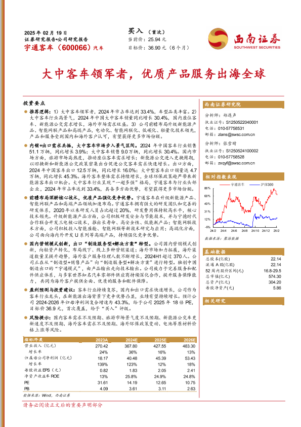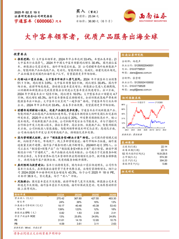 【西南证券】【20250219】宇通客车(600066)大中客车领军者,优质产品服务出海全球-44页