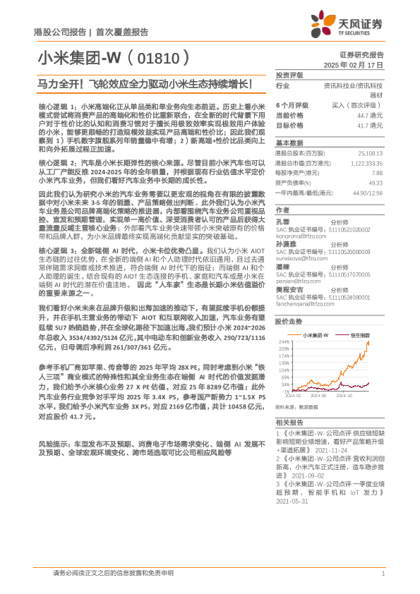【天风证券】【20250217】小米集团-W(01810.HK)马力全开!飞轮效应全力驱动小米生态持续增长!-18页
