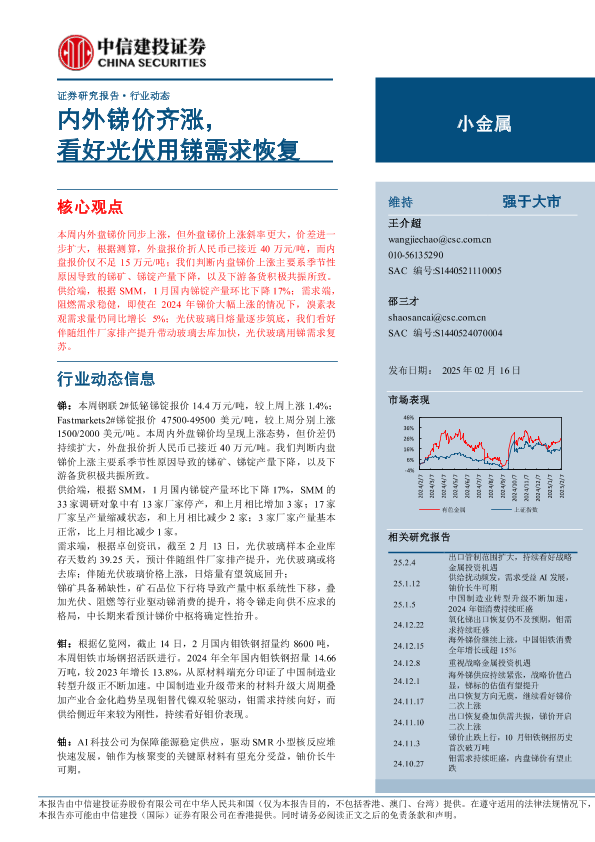 【中信建投证券】【20250216】小金属行业动态:内外锑价齐涨,看好光伏用锑需求恢复-10页