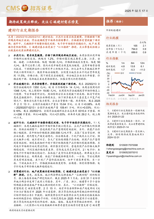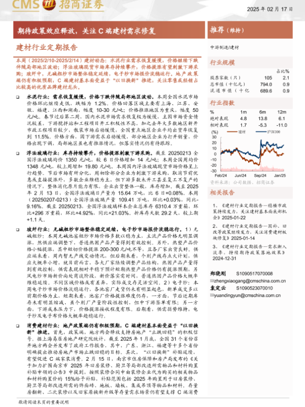 【海通证券】【20250217】建材行业定期报告:期待政策效应释放,关注C端建材需求修复-25页