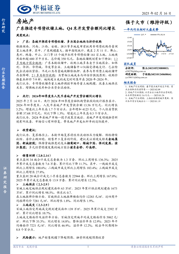 【华福证券】【20250216】房地产行业定期报告:广东推进专项债收储土地,Q4末开发贷余额同比增长-14页