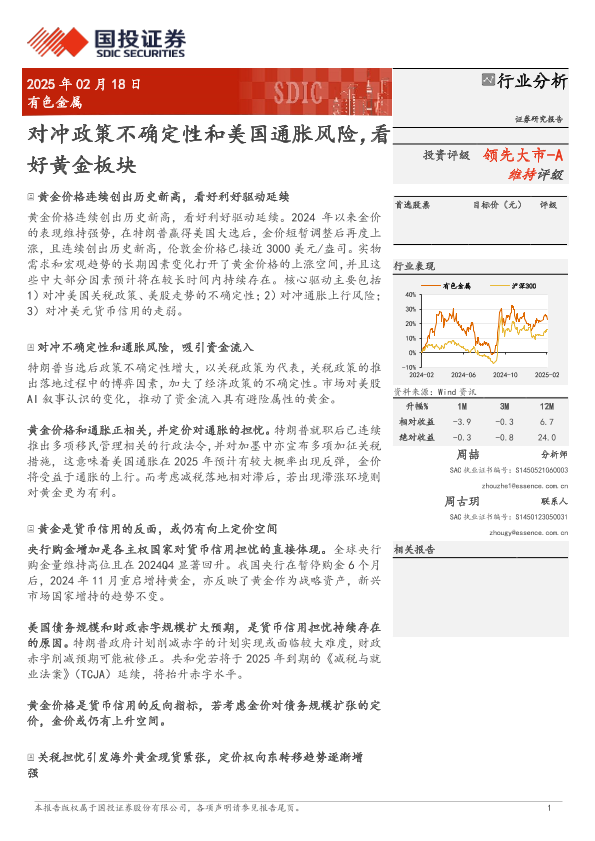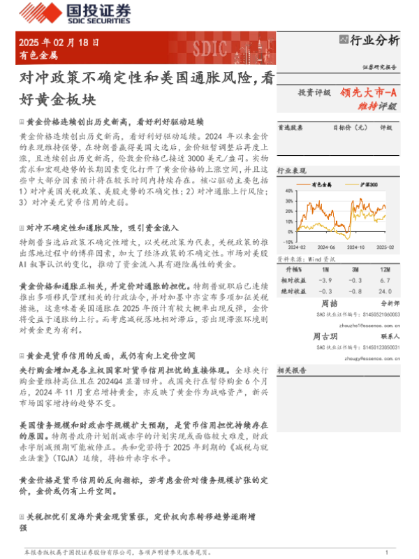 【国投证券】【20250218】有色金属行业分析:对冲政策不确定性和美国通胀风险,看好黄金板块-16页
