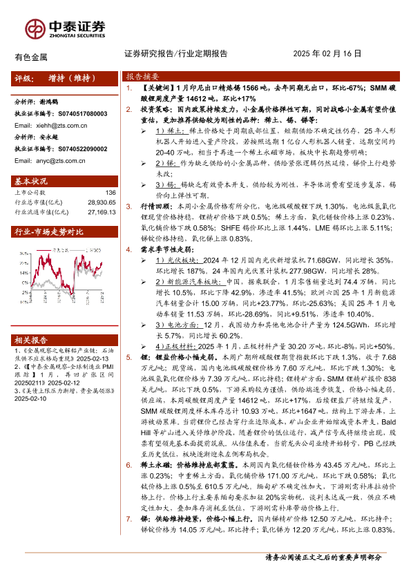 【中泰证券】【20250216】有色金属行业:供给恢复,锂价小幅走弱-25页