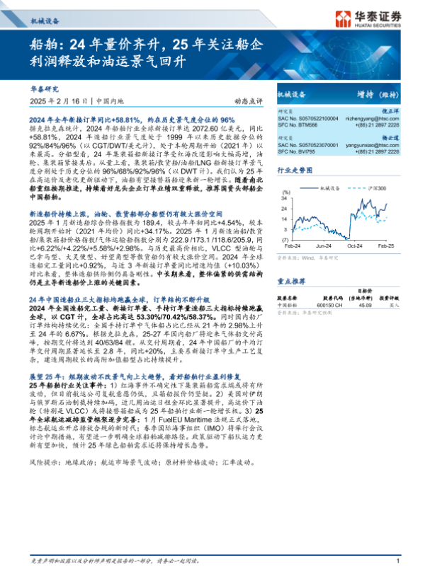 【华泰证券】【20250216】机械设备行业船舶:24年量价齐升,25年关注船企利润释放和油运景气回升-20页