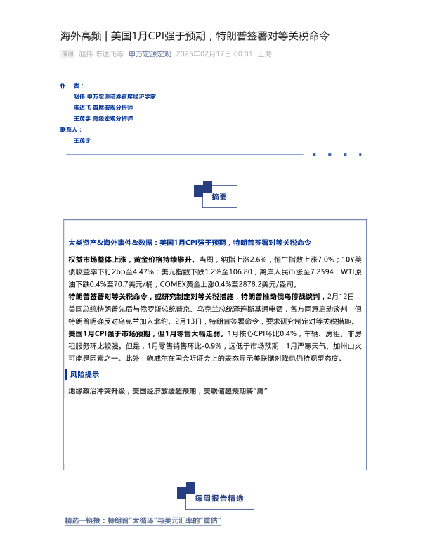 【申万宏源】【20250217】海外高频:美国1月CPI强于预期,特朗普签署对等关税命令-15页