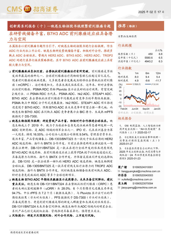 【海通证券】【20250217】业创新药系列报告(十):映恩生物招股书梳理暨前列腺癌专题,在研管线储备丰富,B7H3+ADC前列腺癌适应症具备潜力与空间-18页