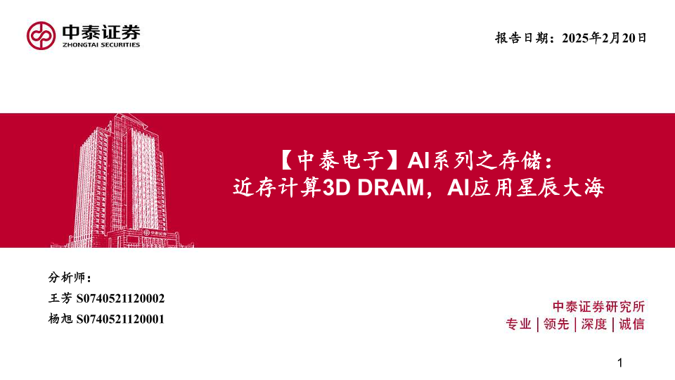 【中泰证券】【20250220】电子行业AI系列之存储:近存计算3DDRAM,AI应用星辰大海-64页