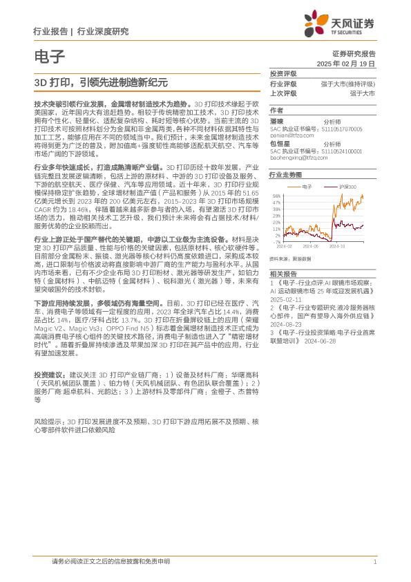 【天风证券】【20250219】电子行业深度研究:3D打印,引领先进制造新纪元-46页