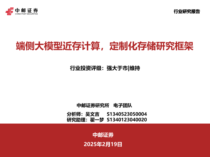 【中邮证券】【20250219】电子行业:端侧大模型近存计算,定制化存储研究框架-67页