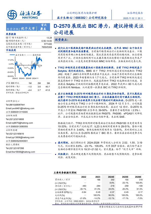 【海通证券】【20250220】益方生物(688382)公司研究报告:D-2570展现出BIC潜力,建议持续关注公司进展-15页