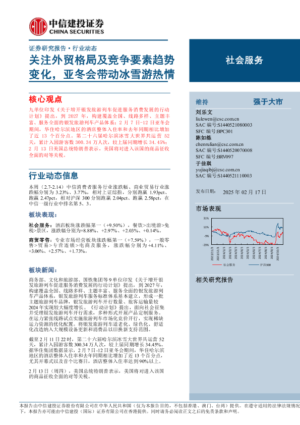 【中信建投证券】【20250217】社会服务行业动态:关注外贸格局及竞争要素趋势变化,亚冬会带动冰雪游热情-26页