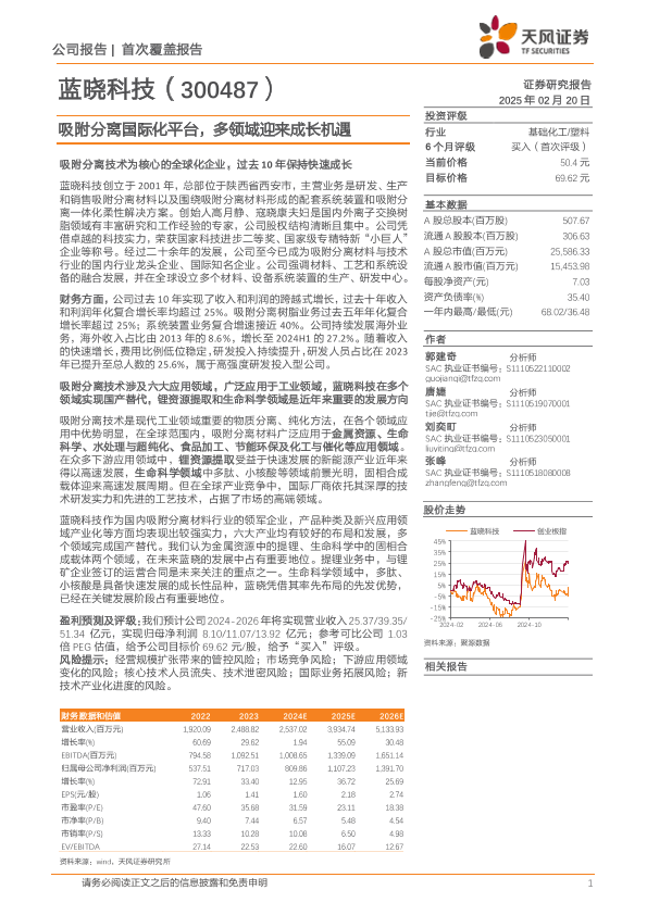 【天风证券】【20250220】蓝晓科技(300487)吸附分离国际化平台,多领域迎来成长机遇-34页