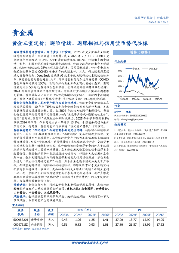 【国盛证券】【20250216】贵金属行业黄金三重定价:避险情绪、通胀韧性与信用货币替代共振-15页