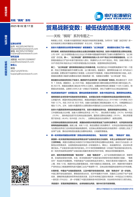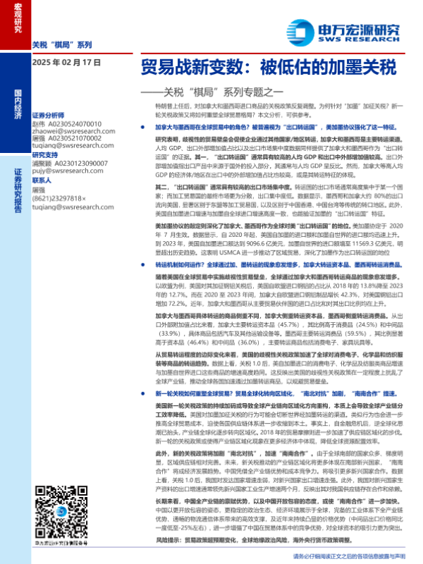 【申万宏源】【20250217】贸易战新变数:被低估的加墨关税——关税“棋局”系列专题之一-13页