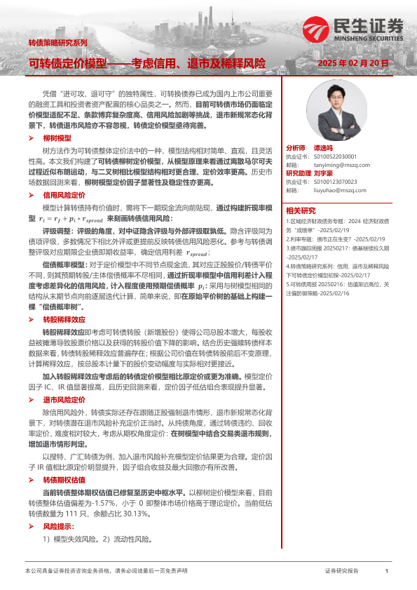 【民生证券】【20250220】转债策略研究系列:可转债定价模型——考虑信用、退市及稀释风险-25页