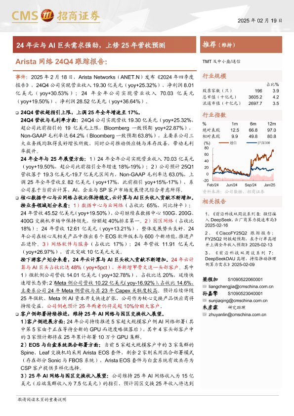 【海通证券】【20250219】通信行业Arista网络24Q4跟踪报告:24年云与AI巨头需求强劲,上修25年营收预测-11页