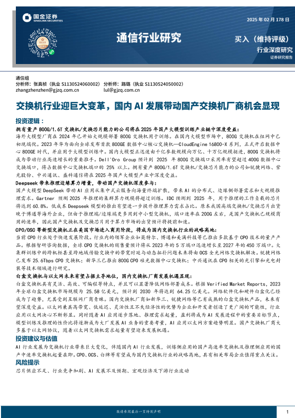 【国金证券】【20250218】通信行业研究:交换机行业迎巨大变革,国内AI发展带动国产交换机厂商机会显现-24页