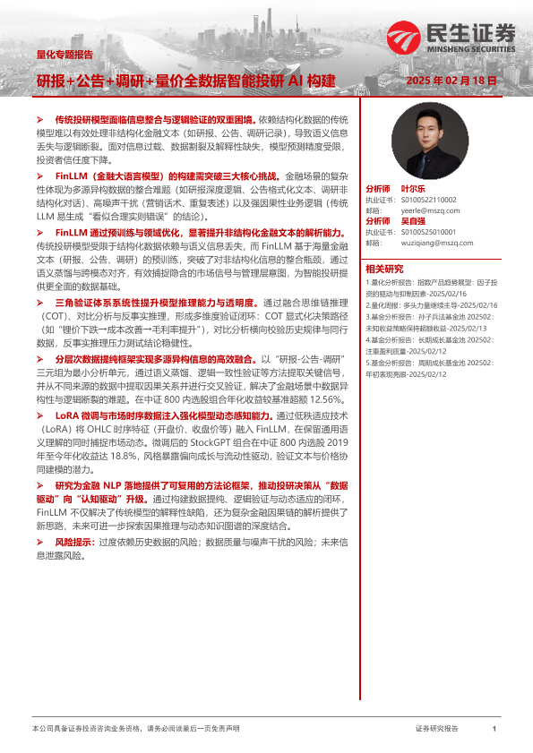 【民生证券】【20250218】量化专题报告:研报+公告+调研+量价全数据智能投研AI构建-46页