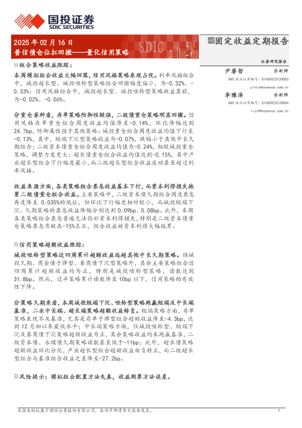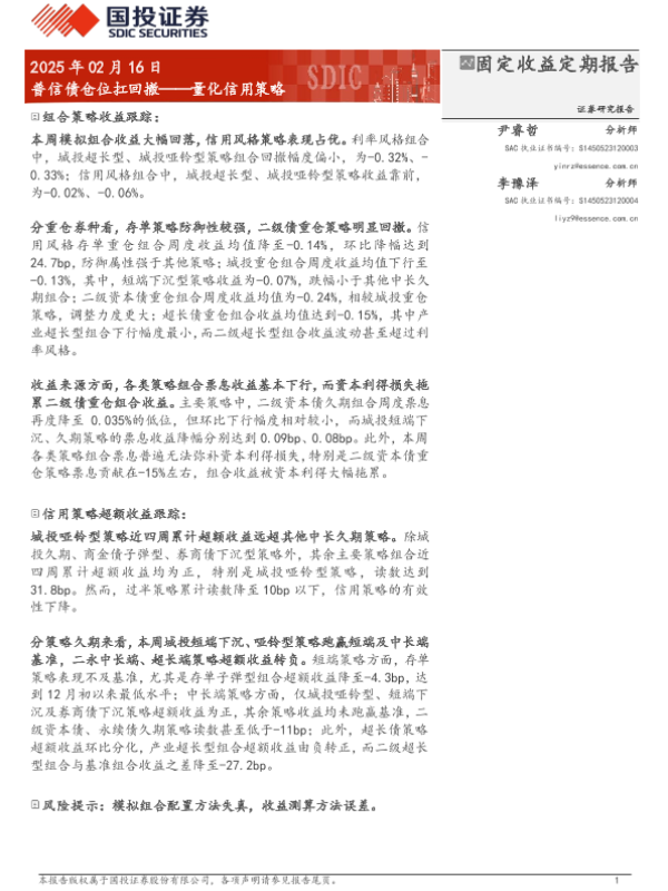 【国投证券】【20250216】量化信用策略:普信债仓位扛回撤-11页