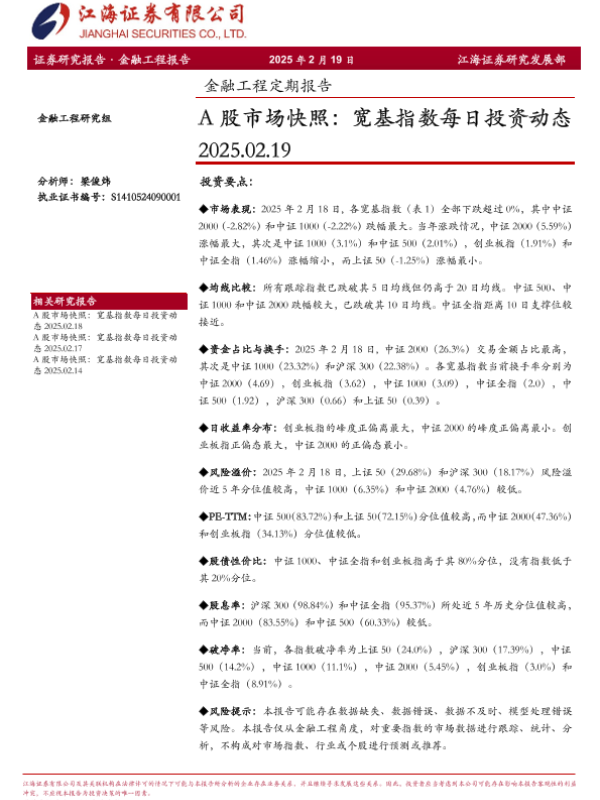 【江海证券】【20250219】金融工程定期报告:A股市场快照,宽基指数每日投资动态-13页