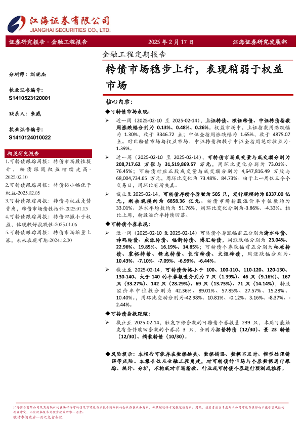 【江海证券】【20250217】金融工程定期报告:转债市场稳步上行,表现稍弱于权益市场-12页