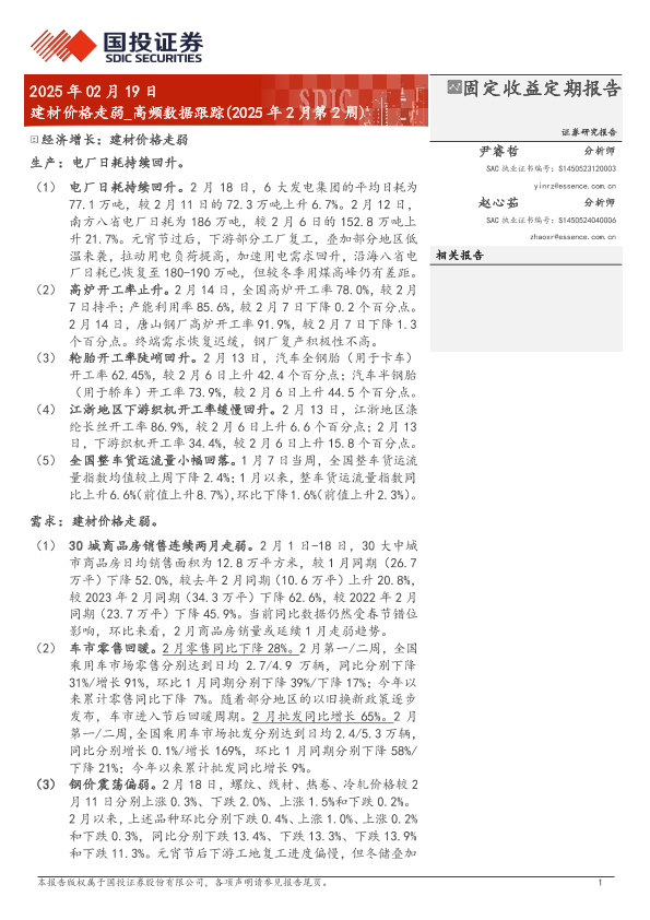 【国投证券】【202502】高频数据跟踪(2025年2月第2周):建材价格走弱-15页