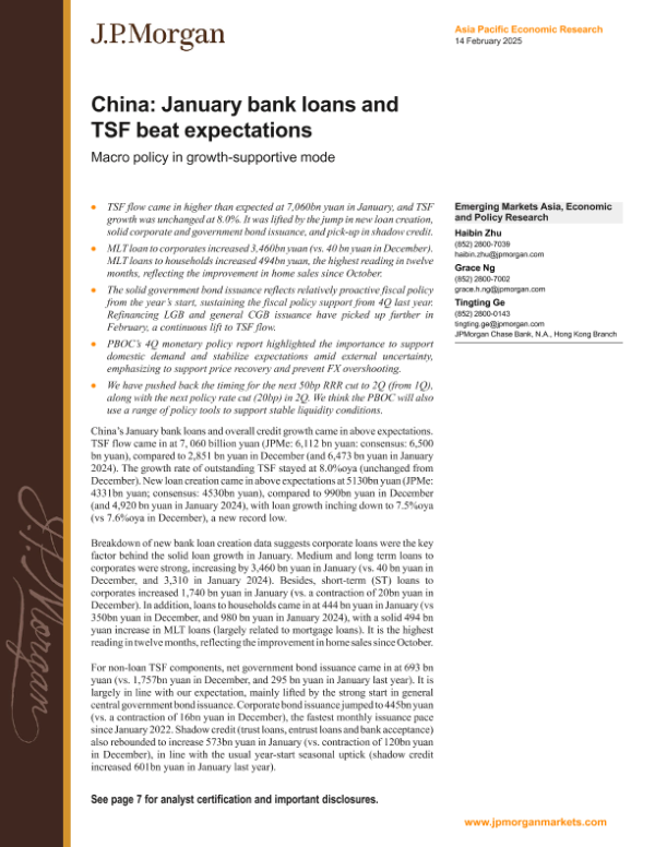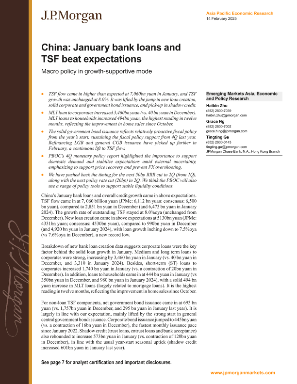 【J.P. Morgan】【20250214】FI-China January bank loans and TSF beat expectations Macro policy in growth-supportive mode-11页