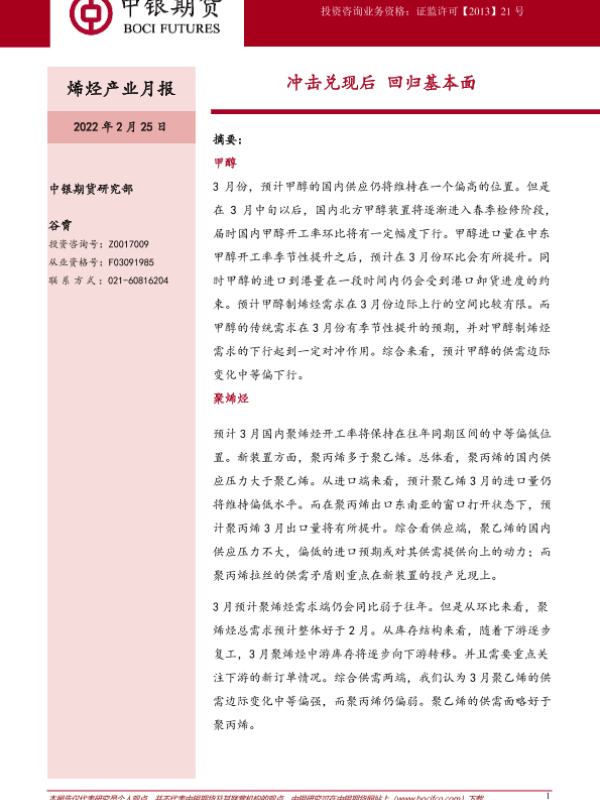 【中银期货】【20220225】烯烃产业月报:冲击兑现后,回归基本面-23页