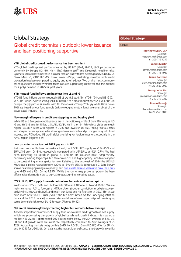 【UBS Securities LLC】【20250212】Global Strategy _Global credit technicals outlook lower issuance and lean positioning supportive-10页