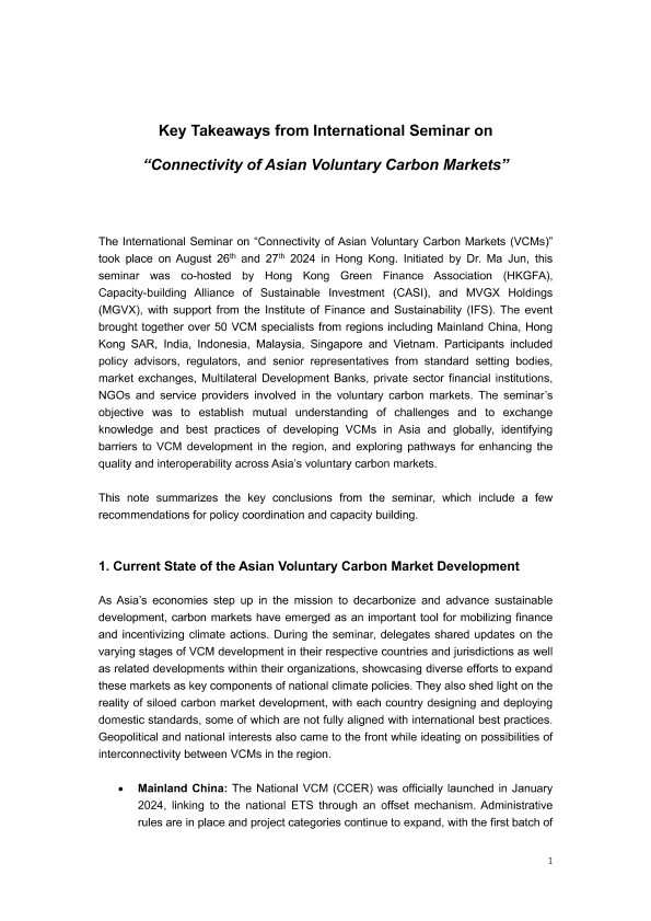 【香港绿色金融协会(HKGFA)】【20241223】“亚洲自愿碳市场互联互通”国际研讨会 ——关键议题与专家建议-8页