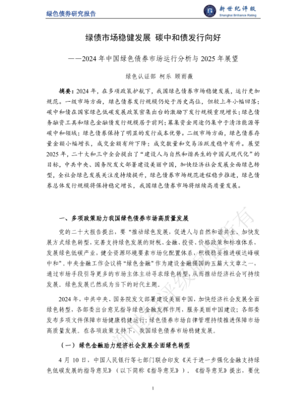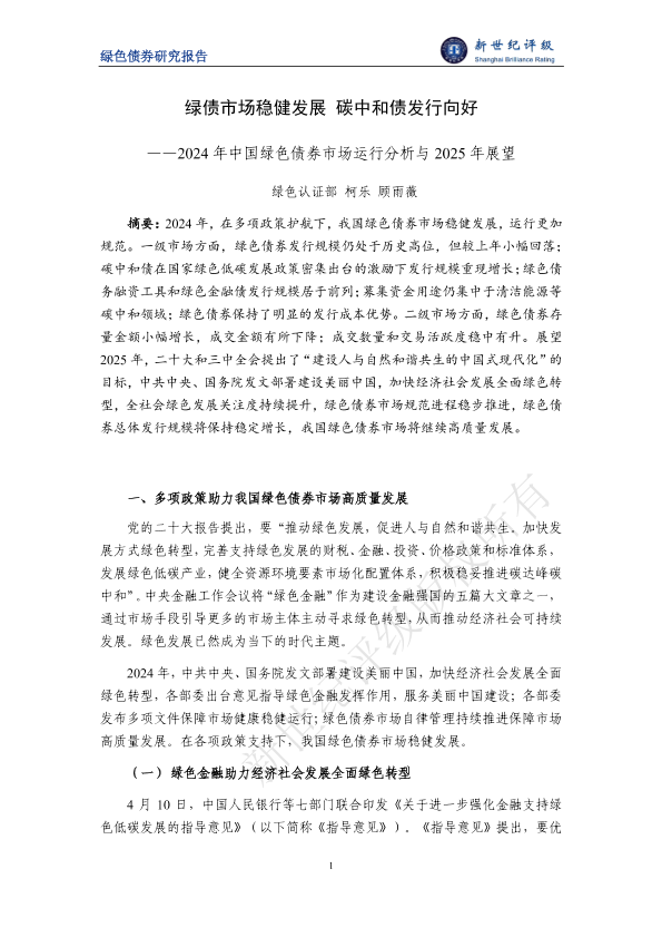 【绿色认证部】【2024】绿债市场稳健发展 碳中和债发行向好——2024年中国绿色债券市场运行分析与2025年展望-15页