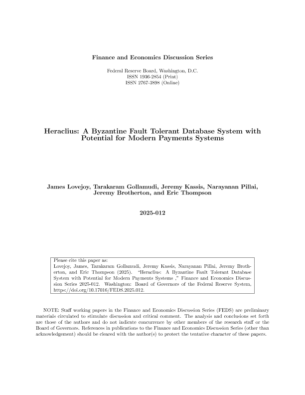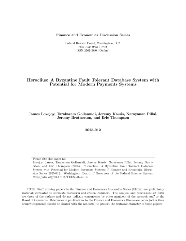 【Federal Reserve Board】【2025012】Heraclius A Byzantine Fault Tolerant Database System with Potential for Modern Payments Systems-15页