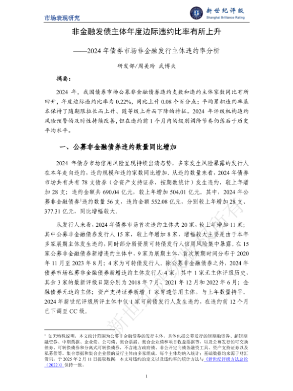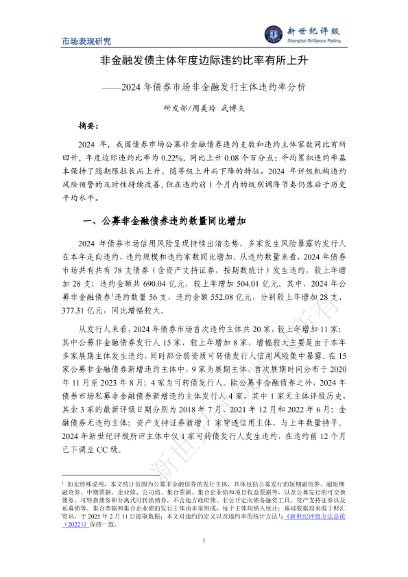 【研发部/周美玲武博夫】【2024】非金融发债主体年度边际违约比率有所上升——2024年债券市场非金融发行主体违约率分析-7页