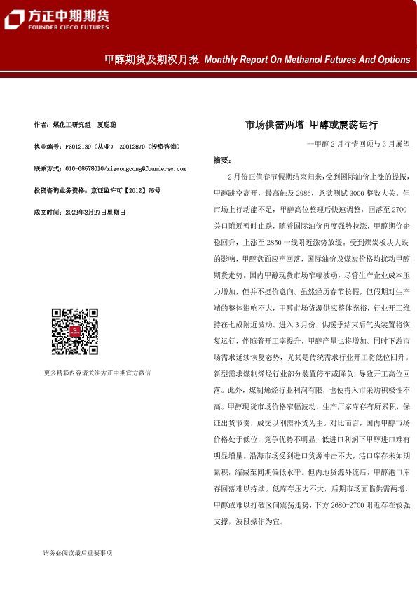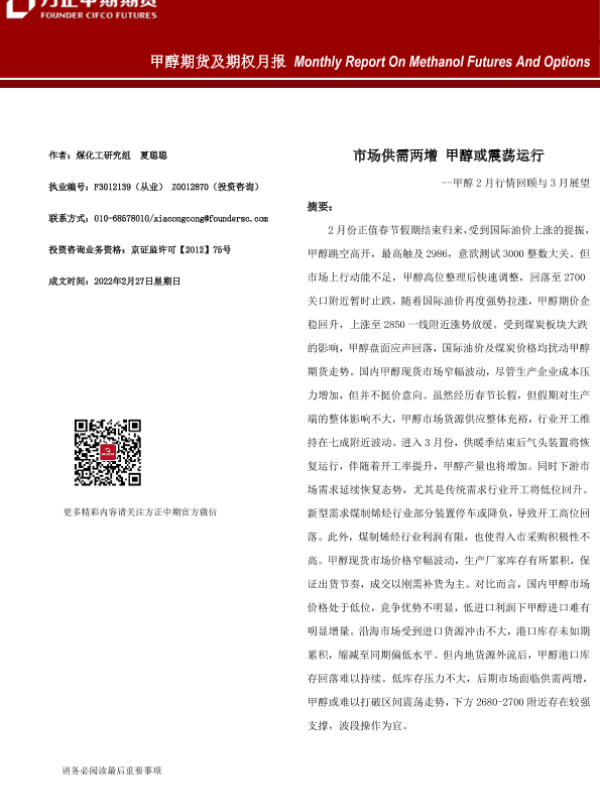 【方正中期期货】【20220227】甲醇期货及期权月报-21页