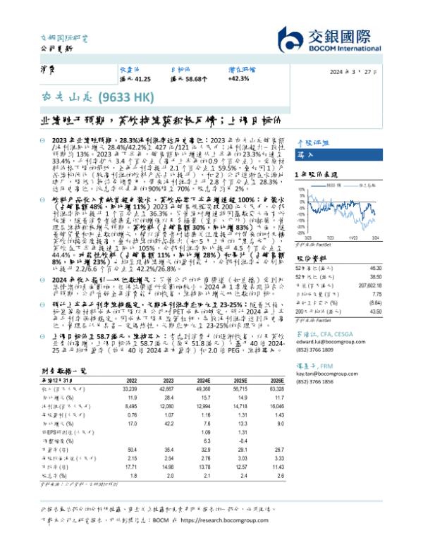 【交银国际】【20240327】业绩胜于预期,茶饮持续获积极反馈;上调目标价-7页