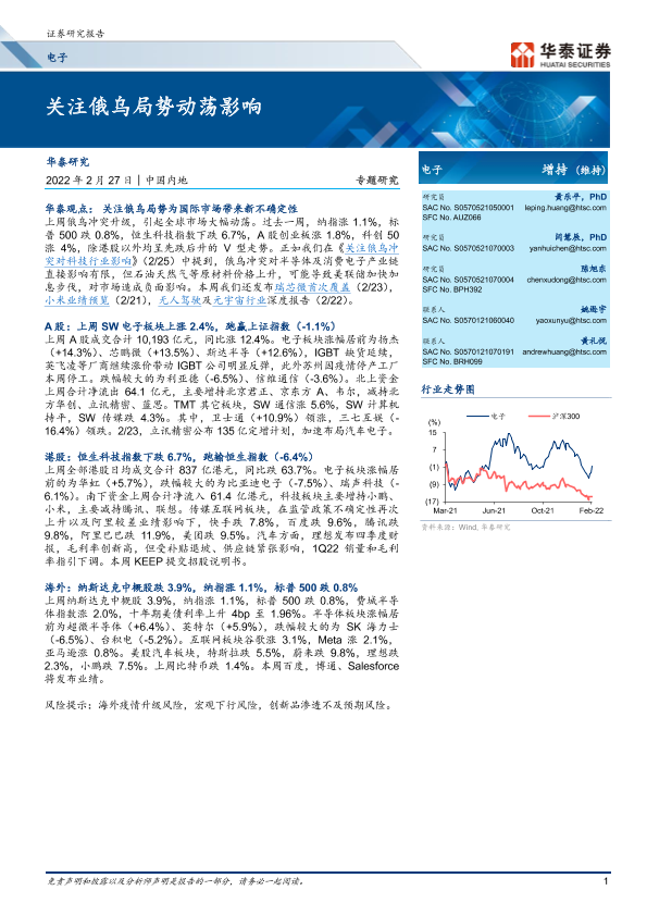 【华泰证券】【20220227】电子行业专题研究:关注俄乌局势动荡影响-17页