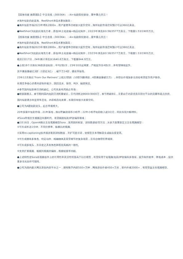 【国海证券】【2024】【国海传媒 姚蕾团队】中文在线(300364):AI+短剧双轮驱动,重申重点关注-1页