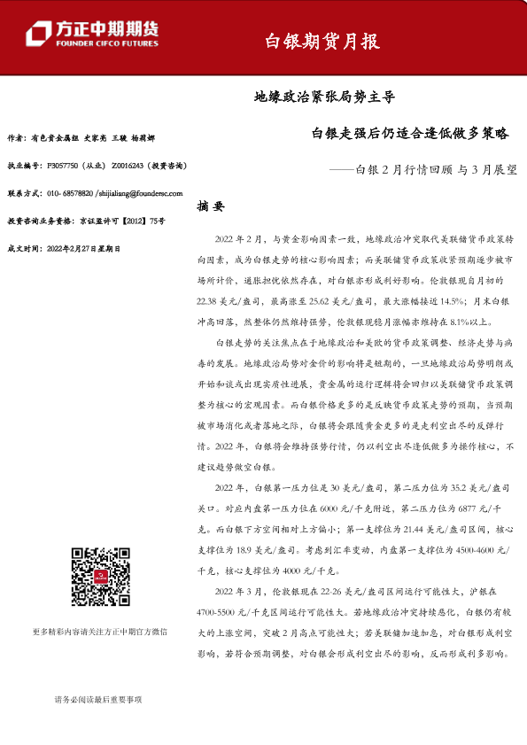 【方正中期期货】【20220227】白银期货月报-20220227-51页