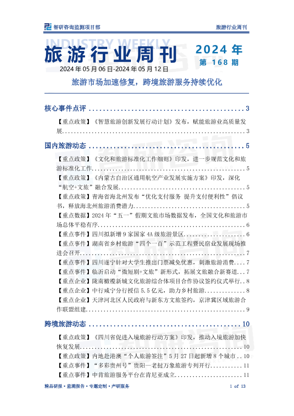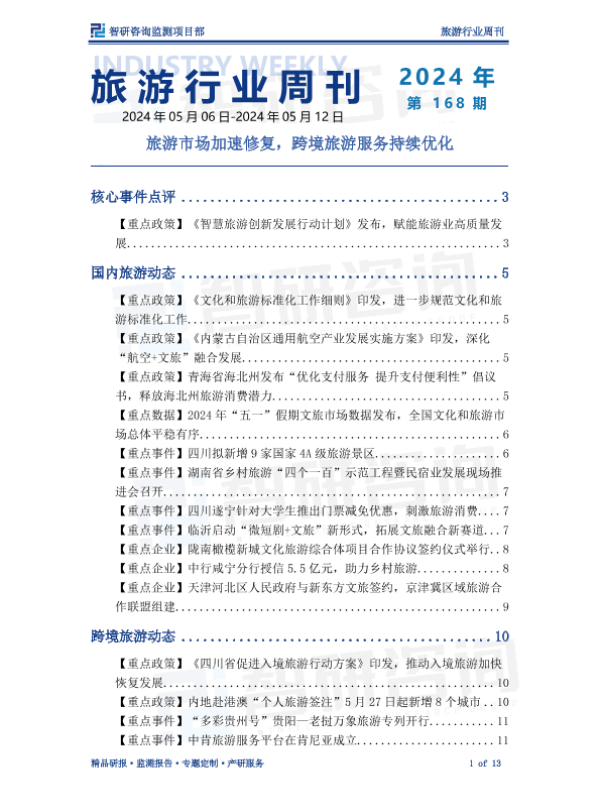【智研咨询监测项目部】【202405】旅游产业情报周刊:旅游市场加速修复,跨境旅游服务持续优化-13页