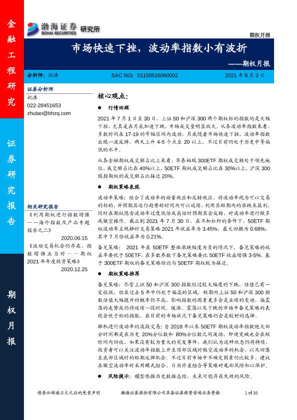 【渤海证券】【20210803】期权月报:市场快速下挫,波动率指数小有波折-16页