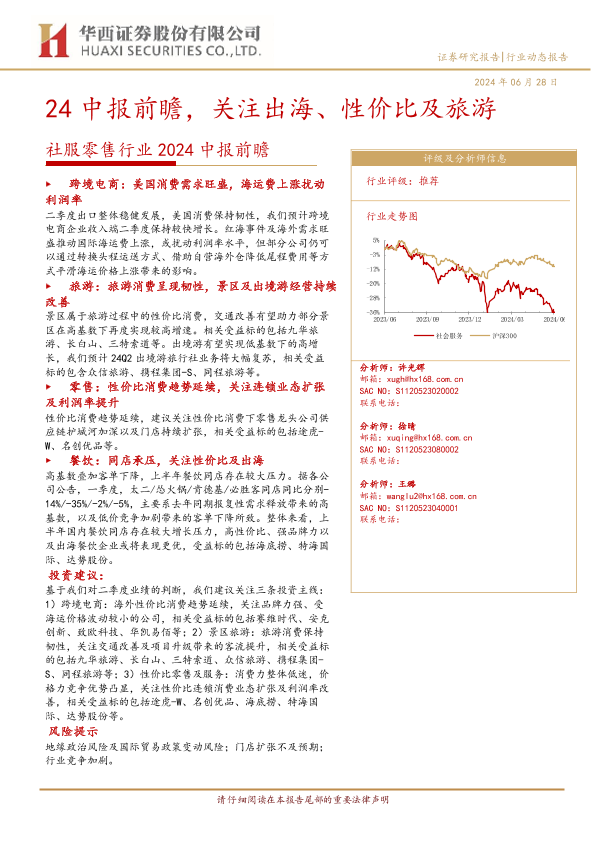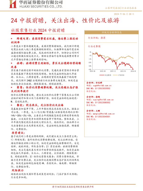 【华西证券】【20240628】社服零售行业2024中报前瞻:24中报前瞻,关注出海、性价比及旅游-8页