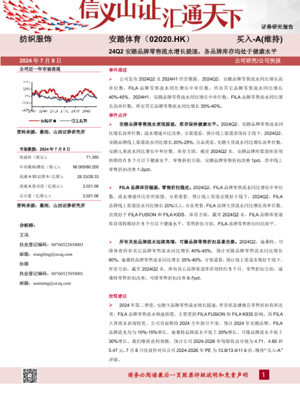 【山西证券】【20240709】24Q2安踏品牌零售流水增长提速,各品牌库存均处于健康水平-5页