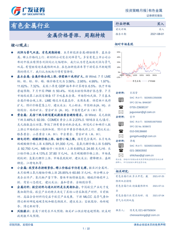 【广发证券】【20210801】有色金属行业:金属价格普涨,周期持续-22页